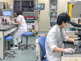 - 患者さんの診断、治療のために、良質な検査データの報告に努める。