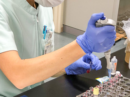 - 輸血のための血液型を調べたり、実際に輸血する血液が適合するかの試験(交差適合試験)をします。