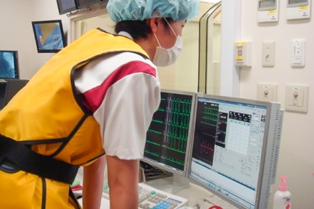 心臓カテーテル検査(CAG)及び治療(PCI)、下肢の血管内治療(EVT)に携わっており、ポリグラフの操作・計測、血管内エコー(IVUS)の操作、物品管理などを行っています。